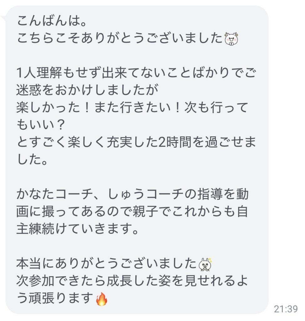 親御さまから嬉しいメッセージを